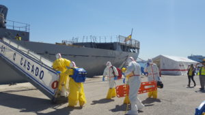 Es ésta una enfermedad transmisible que podría suponer un riesgo para la salud pública de nuestro país. Se trata de una práctica del ejercicio MARSEC que cada año organiza la Fuerza de Acción Marítima de la Armada (FAM), y que supone simulacros en diferentes escenarios marítimos de crisis.