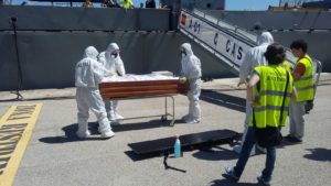 Se han organizado las tareas de descontaminación y desinfección del barco, gestión de los residuos sanitarios y el traslado del cadáver del barco al cementerio de Palma para ser incinerado, que es lo que marcan los protocolos de seguridad ante estas circunstancias excepecionales.