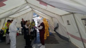 La Dirección General de Emergencias e Interior ha participado hoy en el simulacro de respuesta y coordinación ante la presencia de una persona fallecida y diversos enfermos a bordo de un barco de bandera española procedente de Sierra Leona, sospechosos de sufrir fiebre hemorrágica viral.