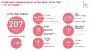 JUAN RIERA ROCA¶ La curva epidemiológica del COVID19 vuelve a despagar en Baleares, con el registro en las últimas 24 horas de 207 nuevos casos, 92 más que la víspera, dos fallecidos más en la lista general, que asciende ya a 414 personas, y otro en la lista de residencias de la tercera edad que se eleva a 194.
