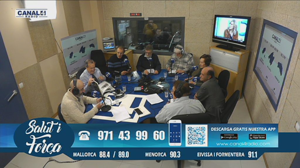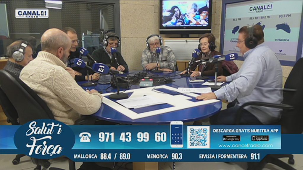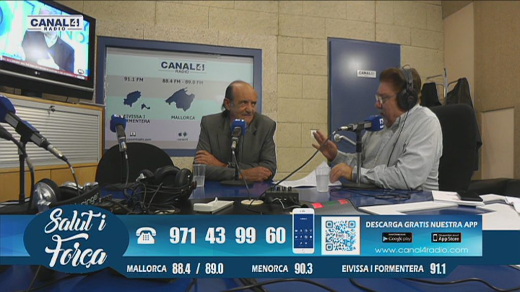 Entrevista a Juli Fuster, seguida de tertúlia amb Soledad Gallardo, Ramon Colom i Antoni Bennasar. Programa Salut i Força a Canal 4 TV, dirigit i presentat per Joan Calafat.