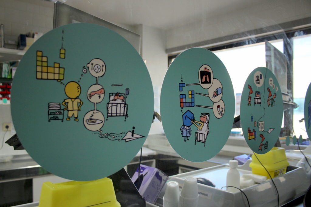 Las tiras, que ya se han ubicado en paredes y mostradores del Hospital Son Llàtzer, se han diseñado a partir de cinco principios: el humor, la originalidad, la precisión del trazo, la crítica constructiva y las propuestas de mejora.