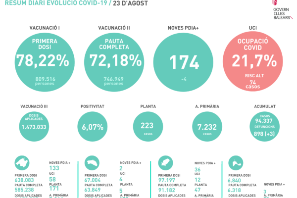 El Govern solicita autorización judicial para exigir vacunación, PDIA o haber pasado el COVID19 para acceder a residencias y eventoscalendar_today23 agosto, 2021editJuan Riera Roca