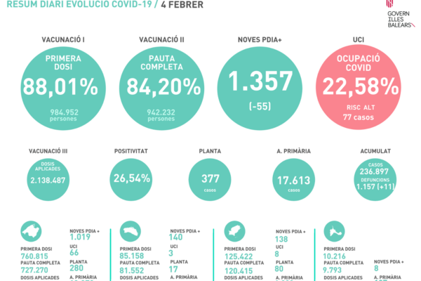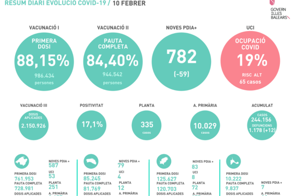 El Govern retira el pasaporte COVID ante la mejora de la situación epidemiológica, que hoy registra 782 contagios y otras 12 muertescalendar_today10 febrero, 2022editJuan Riera Roca