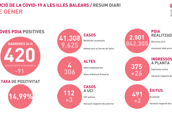 Baleares despide el año con más de 500 nuevos contagios de COVID19, otros 5 muertos y la tasa de positividad rondando el 10%calendar_today31 diciembre, 2020editJuan Riera Roca
